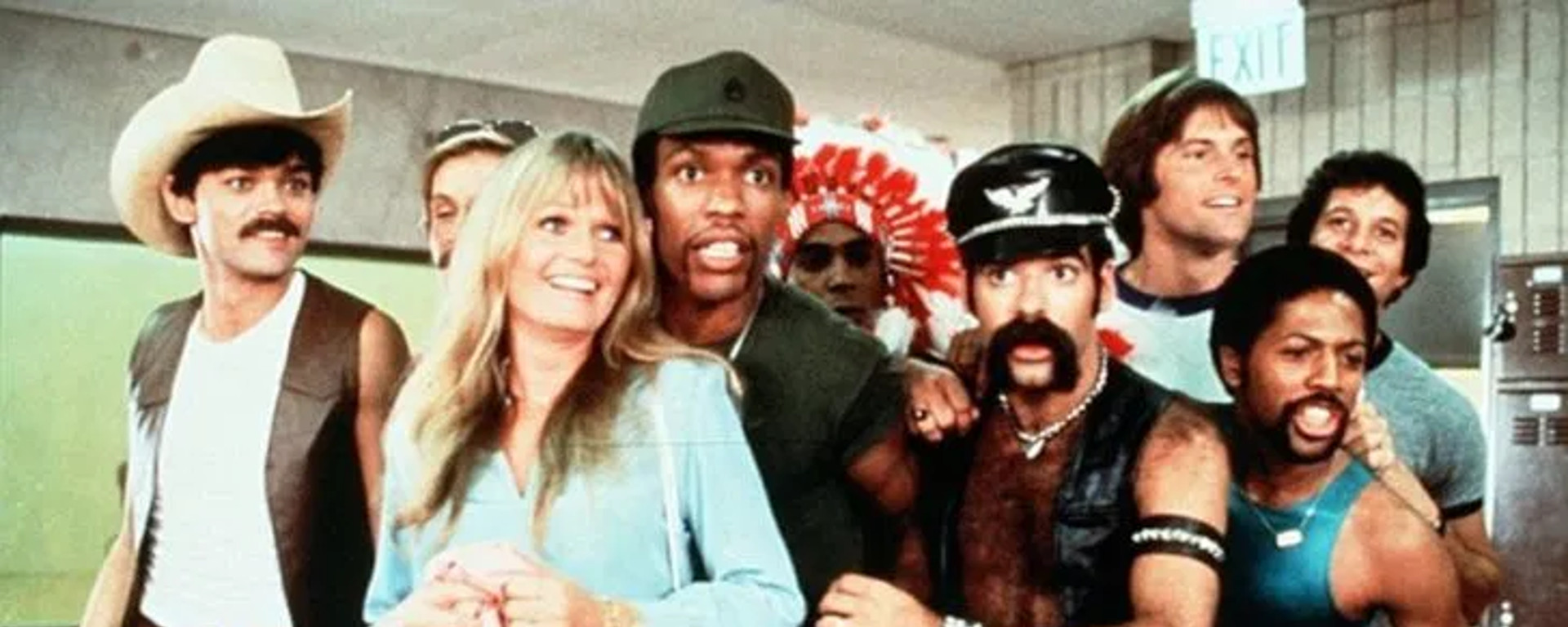 The premise alone was enough to make me stop, rent and watch this thing, with the story being a fictionalized tale of how the Disco group The Village People (whose songs usually only play in gay bars or at wedding receptions these days) rose to fame. Yet the rest of the cast also made me have to see it in order to believe it. A pre-Police Academy Steve Guttenberg, as the man who discovers The Village People. A post-Superman: The Movie Valerie Perrine (aka MISS TESCHMACHER!) as the socialite model who promotes them. And a pre-sex change operation Caitlyn Jenner (still Bruce Jenner here) as the lawyer who represents them.