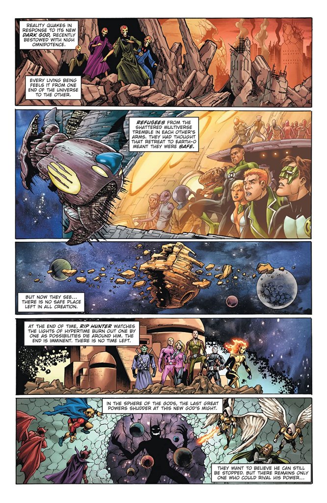 Tynion’s intent is clear. He does not slight the modern era of DC Comics itself. Rather, he mocks the idea that cosmic events are the alpha and omega of comic books. Despite what various powers believe, the vast majority of comic readers turn to stories such as these to read about people. People in costumes with superpowers, but people nonetheless. And to borrow a phrase from Mark Waid, everything falls apart “the minute you made the super more important than the man.”