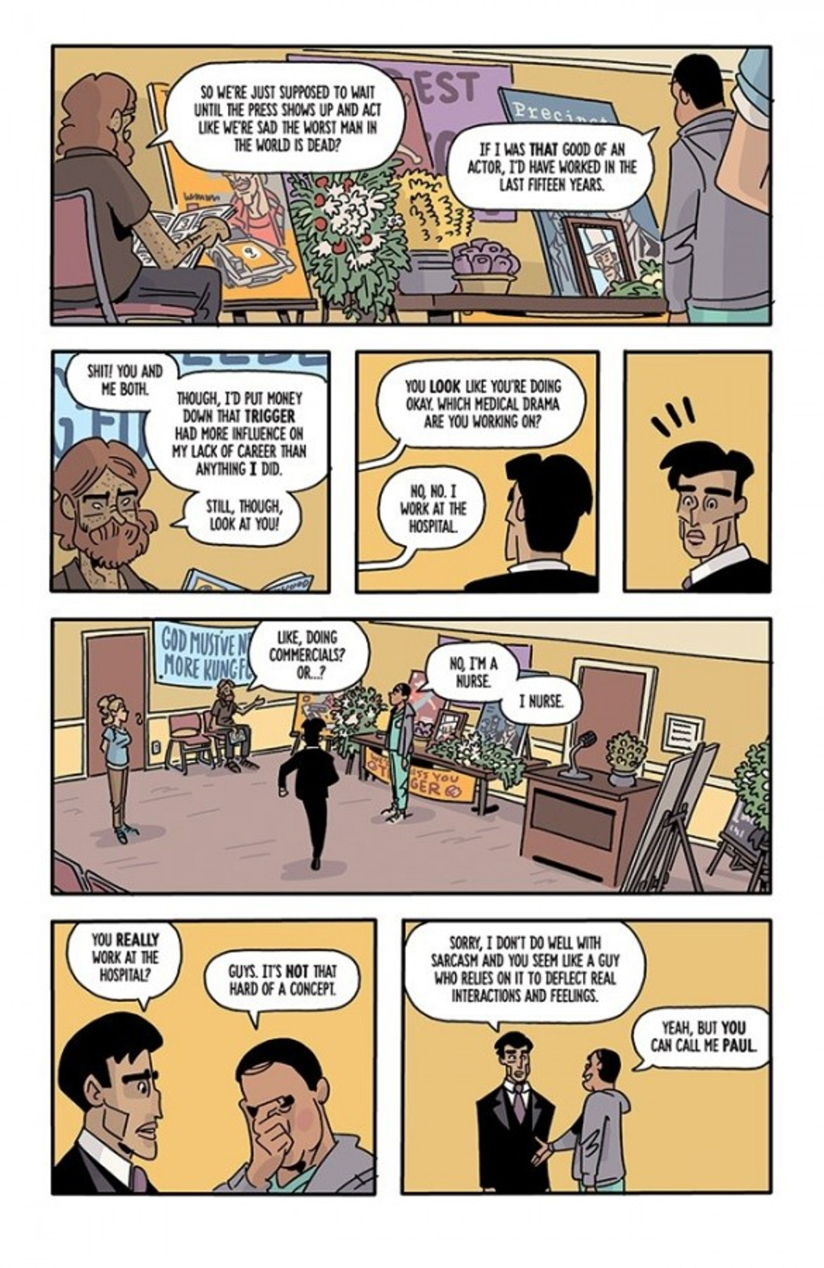 When Trigger Keaton’s body was found strung-up in his trailer, his co-worker Miles Nguyen felt something was wrong. The LAPD were quick to write Keaton’s death off as a suicide, ignoring evidence of a struggle that even Nguyen noticed, despite only having a modicum of detective training for his role. With no other options, Nguyen turns to the only other people who might have an interest in seeing Keaton’s killer brought to justice: the five other actors who played his sidekicks in other projects and had their lives ruined to varying degrees by Trigger Keaton’s abuse. But what if one of them is the killer?
