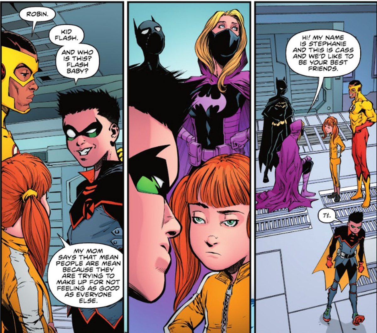 Adams’ story is full of action, but what makes this issue (and indeed his run on The Flash to date) so amazing is all the little character moments. From Irey West cutting the Damian Wayne Robin down to size, to the simple joy Jai West takes in mastering a new application for his super strength under the tutelage of Power Girl, there are a lot of heart-felt moments in this issue. There is comedy. There is pathos. There is ethos. There are also a lot of in-jokes for longtime JSA fans, but those are Easter eggs that don’t require a degree in DC History.