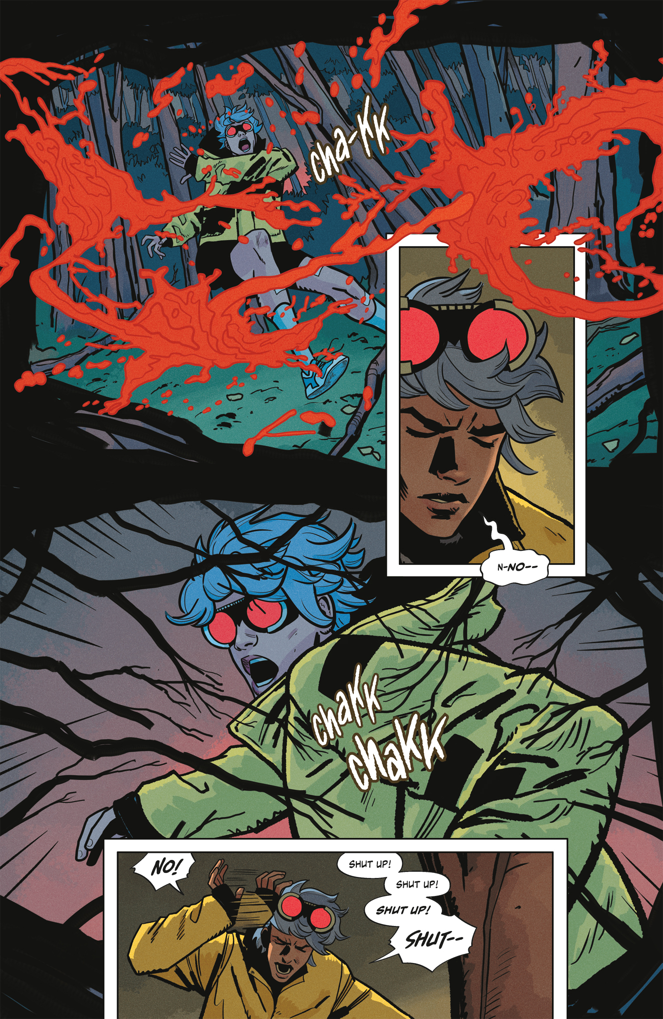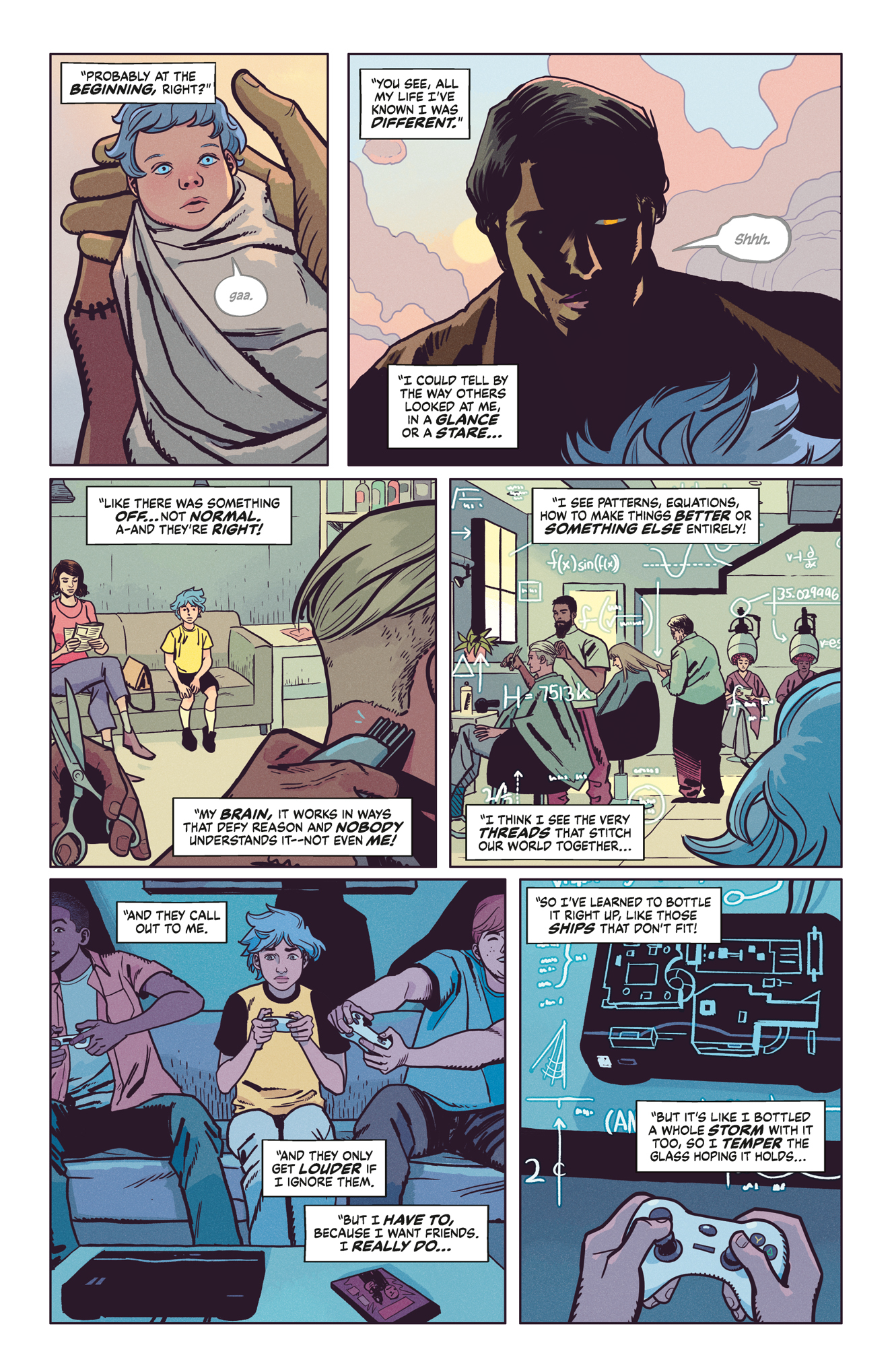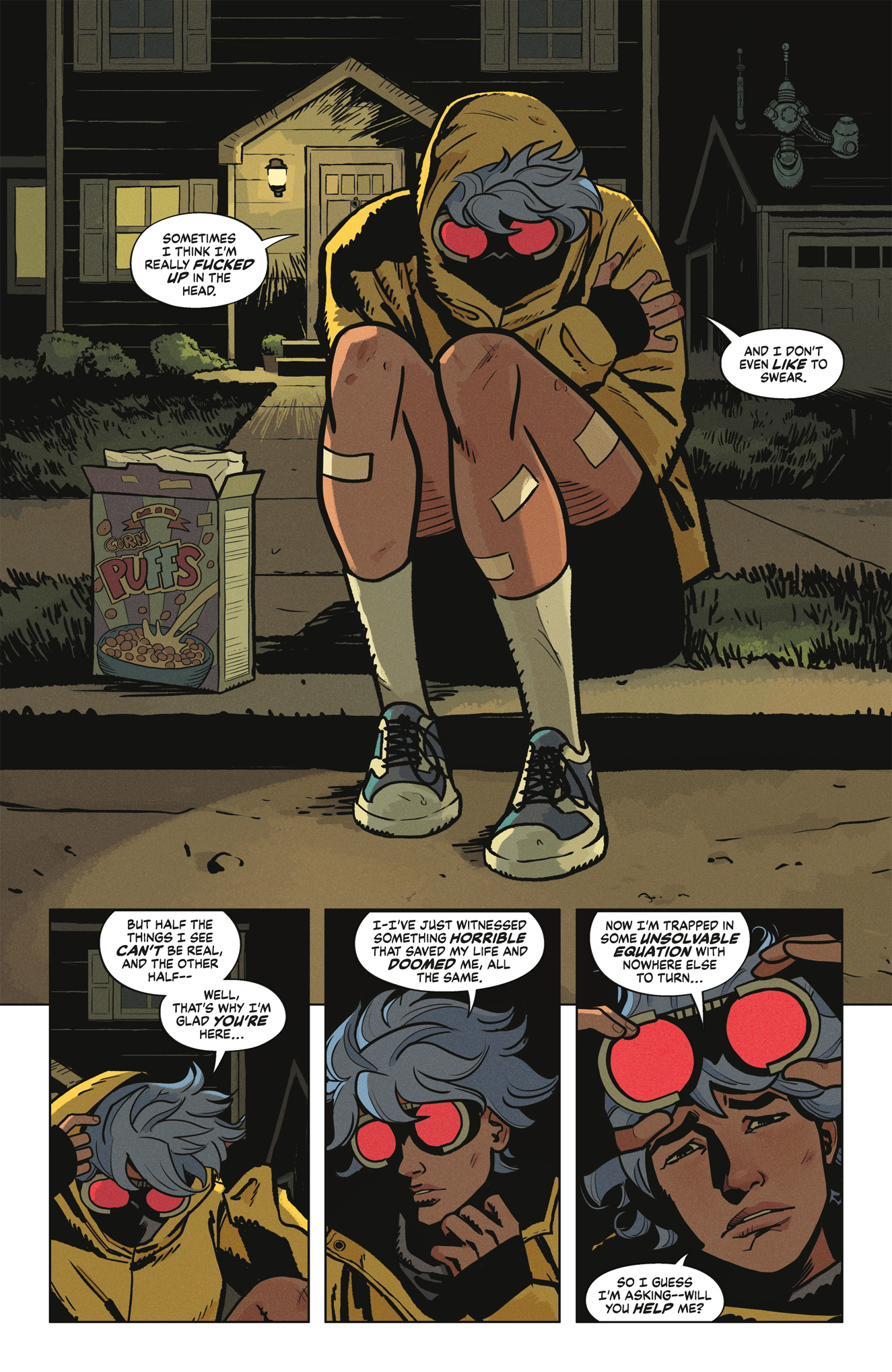 I see elements of the absurdity of Doom Patrol in Tate Brombal’s story. I see the influence of Mike Allred’s Madman in Isaac Goodhart’s art. And there’s a fair bit of Rick Riordan in James Tynion IV’s concept of a teenager who doesn’t fit in coming to terms with their fantastic powers in a world of gods and monsters.