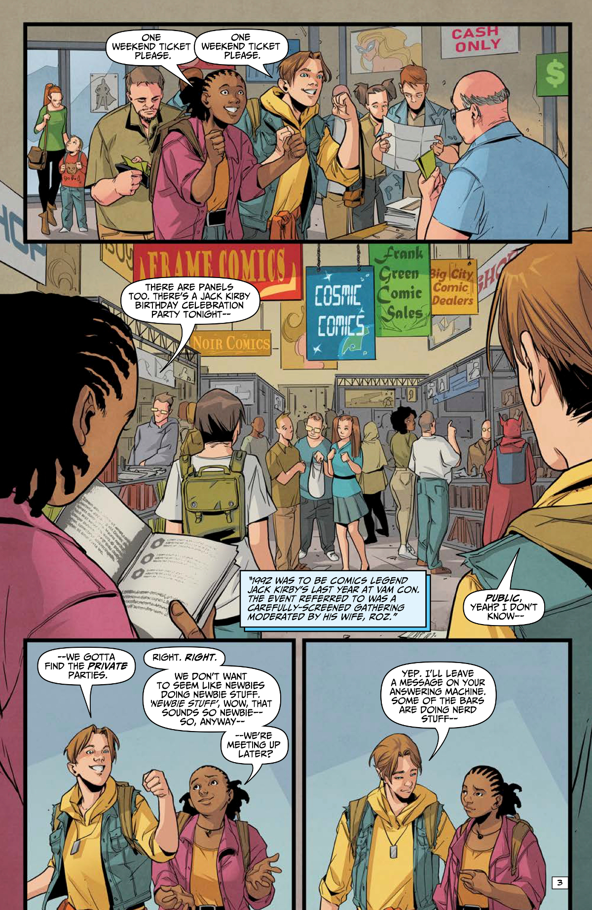 1992. Vista Al Mar. The comic convention held here annually has been a major event for those in the know for years, but the times they are a changing. Hollywood is starting to move in, the old guard are starting to check out ,and aspiring comic creators Deja and Eddie are trying to get their foot in the door to become professionals. The professionals, meanwhile, are trying to find a quiet place to get away from the fans and drink…