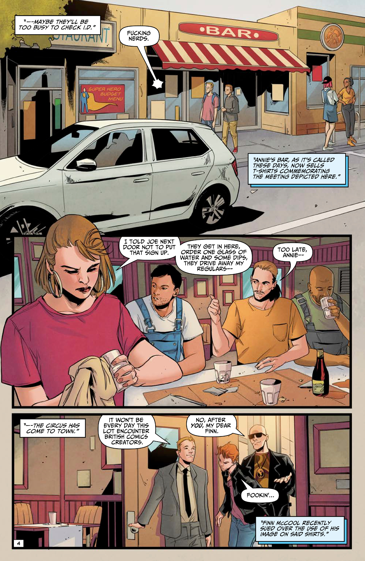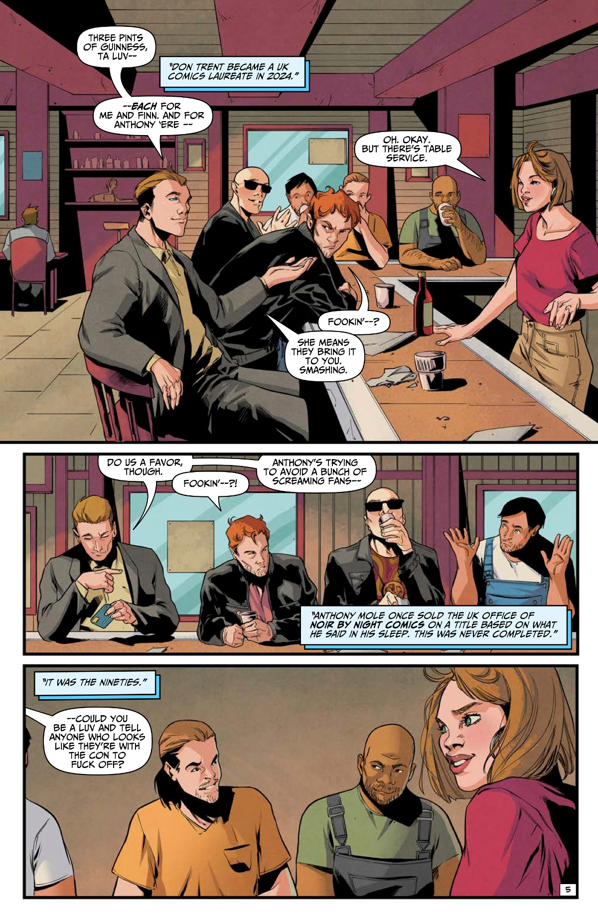 Con & On is reportedly planned to chronicle the history of a certain famous comic book convention, with the names changed and the serial numbers filed off to protect the guilty. Odds are that if you know anything about comic book history, you’ll recognize many of the characters in this first issue. And if you don’t, you can still enjoy Paul Cornell’s heartfelt story of Eddie and Deja’s quest for fame.