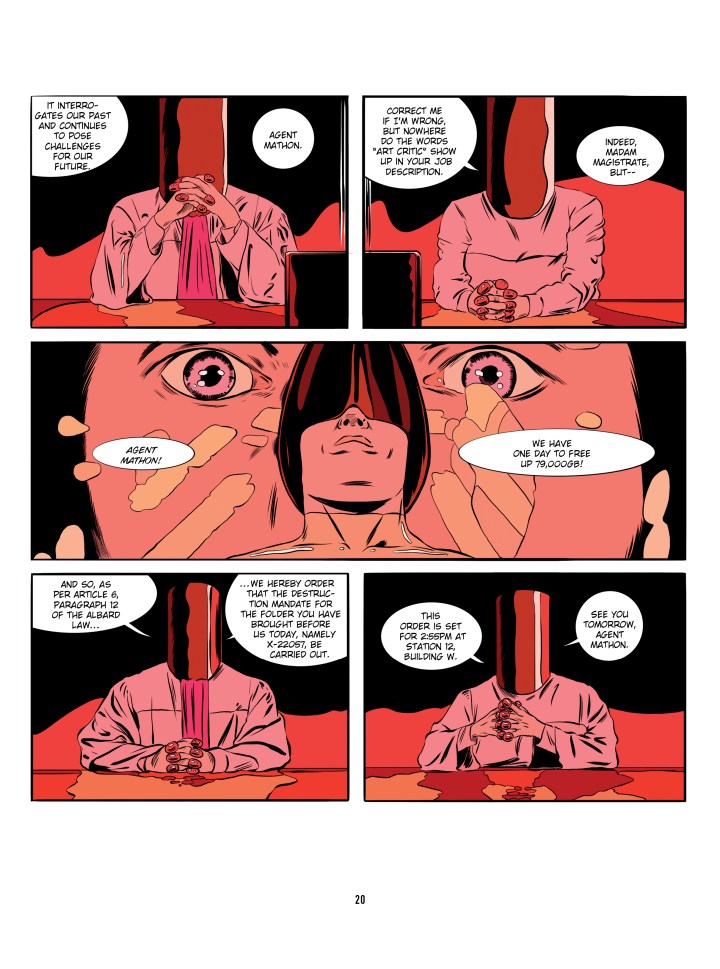 The story starts off centering around Yves Mathon – a disillusioned archivist, who has secretly been saving the movies, literature, and art that he is meant to be preparing for deletion. The modern world seems increasingly shallow to him. From the fact that his job does not truly archive anything, to the fact that his shallow wife is devoting all her energy to an advertising campaign that is considered more worthy of storage space than the works of Victor Hugo. To drive the metaphor home, the task of gestating their child has been given to a nanny robot – decided to be so much more efficient than the old ways of natural birth.